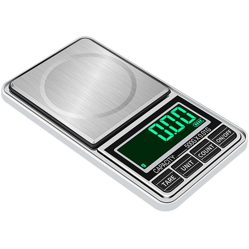 Bilancia elettronica digitale tascabile per gioielli Bilancia nutrizionale Caratteristica: due metodi di alimentazione USB Plug In/2 batterie AAA (batteria non inclusa) Dimensioni: 12,5 x 6,8 x 2,4 cm Tipo Dimensioni display: LCD digitale Carico nominale: 500 g Tipo: Bilancia digitale 500g/0,01g Unità di misura: g/oz/ozt/dwt/gn/ct Strumenti Bilance digitali per gioielli Bilancia elettronica ad alta precisioneIl prodotto include: 1 bilancia digitale 1 cavo USB