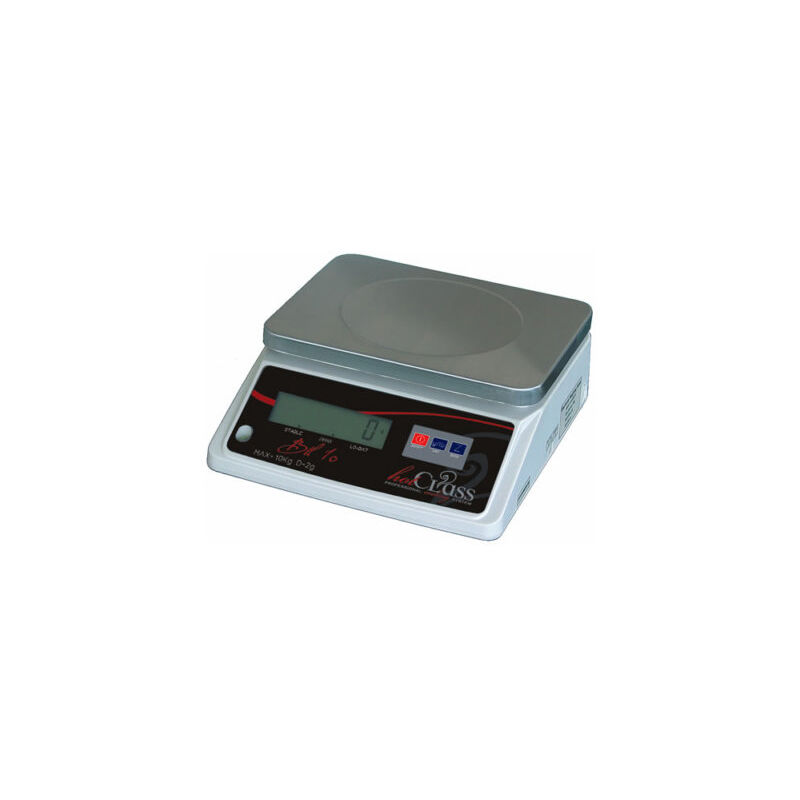 Codice RS0202 - Bilancia elettronica, modello HC-BIL10, dimensioni cm. 27.8x32x13 (lxpxh), piatto dim. cm. 27.5x21.5 (lxp), portata 10 kg, divisione 1 gr. Funzione di esclusione della tara, alimentazione a batteria (inclusa) con ricarica sulla rete elettrica (230 volt). Display retroilluminato.