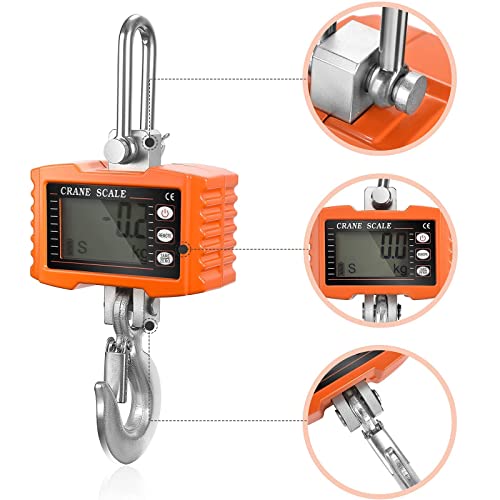 Bilancia Industriale 1000 kg, Crtkoiwa Bilancia Digitale per Gru Bilancia Elettronica per Gru Bilancia per Gru Sospesa Bilancia Sospesa Elettronica con Telecomando per Mercato Dell'agricoltore