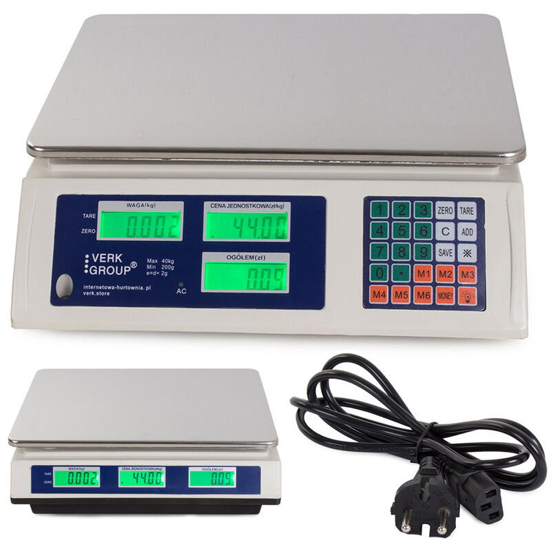 Bilancia da negozio Precisione 40kg 2 g Specifiche tecniche: Codice prodotto: 17108 Realizzata con materiali di alta qualità Alimentazione: rete 230V o 4V Batteria 4ah (inclusa) Piatto in acciaio inox Colore: bianco Display LCD retroilluminato 2 livelli di luminosità del display Numero di display: 6 (3 sul fronte e 3 sul retro) Scritte polacche sui display Funzione TARE Funzione ZERO Funzione somma prezzi Funzione somma peso Funzione ECO - risparmio batteria (la bilancia va automaticamente in stand-by quando non utilizzata) Certificato CE Dati tecnici: Intervallo di misurazione: 0 - 40 kg Precisione: 2 g Dimensioni del piatto di pesata: 32 cm x 33,5 cm Peso proprio: 2,85 kg Temperatura di lavoro: da -10 a 40 gradi Celsius Il set include: bilancia da negozio da 40 kg nuova di zecca Cavo di alimentazione Confezione originale il nostro canale youtube https://www.youtube.com/channel/UCFemc7GlPsFZtGtT6AjpJTQ