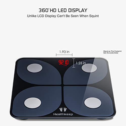 Aggiornato 13 Analisi del Corpo:Non solo bilancia del peso corporeo, ma anche bilancia del grasso corporeo adatta per allenarsi in palestra, correre e perdere peso, fino a 13 analisi della composizione corporea: BMI, grasso corporeo, acqua, muscolo scheletrico, BMR, massa muscolare, proteine ecc. È il vincitore del test della bilancia pesapersone con APP regolarmente aggiornata.