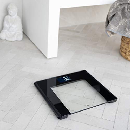 Risultati di pesatura estremamente precisi: L'elegante bilancia in vetro (33,1 x 30,3 x 2,2 cm) con superficie di pesata in vetro di sicurezza temperato pesa in modo preciso e affidabile. Fino a 180 kg con incrementi precisi di 50 g