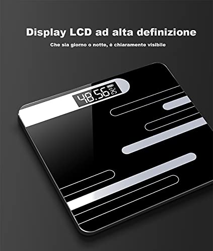 Bilancia Pesapersone Digitale di Alta Precisione con Vetro Temperato, Display Lcd, Ricarica USB, Bilancia Pesapersone con Visualizzazione Della Temperatura (Rosa a righe)