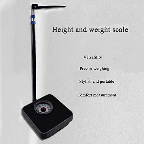 Bilancia pesapersone Meccanica con Metro, Altezza e Scala del Peso, Bilancia per la misurazione di precisione, quadrante analogico Senza Batteria, 120 kg / 190 cm, Adatto per Scuola, Ospedale, casa