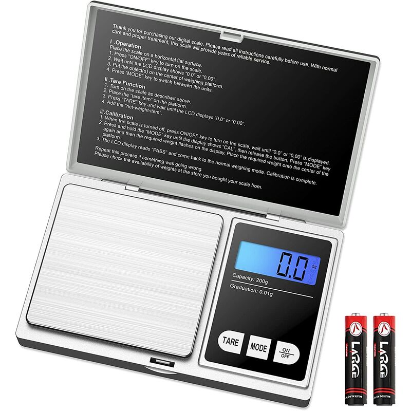 Mini tasca unica - Progettata con una piattaforma in acciaio inossidabile e una custodia protettiva, questa bilancia è costruita per essere robusta, durevole e tascabile per molte delle tue esigenze di pesatura portatili, come cibo, compresse, polvere, pietre preziose, monete, gioielli, oro, ecc. Che utile bilancia tascabile! Precisione ad alta precisione: la bilancia da cucina, costruita con un sistema di sensori ad alta precisione, fornisce risultati immediati e accurati da 0,05 g (0,005 once) a 100 g. Facile da pulire e da usare, ti garantisce una sessione di pesatura precisa e precisa. L'intervallo di errore è ±0,05 g. 6 diverse misurazioni: bilancia per alimenti, include tutte le unità di misura necessarie per una facile traduzione del peso, converte le misurazioni tra g, gn, oz, ozt, ct e dwt in pochi secondi. Comodo per scegliere l'unità adatta premendo il pulsante modalità. Design compatto - Design minimalista e compatto (dimensioni: 3""x 5""x 3/4"") in una tasca portatile