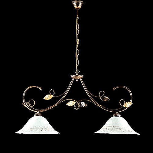 Bilanciere 2 Luci Ferro Battuto Marrone e Oro Vetro Bianco e Oro Serie Magnolia