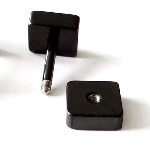 6MM Nero Bilanciere Orecchini da Uomo Donna, Finto Dilatatore Fake Plug, Acciaio Inossidabile, 1 Paio