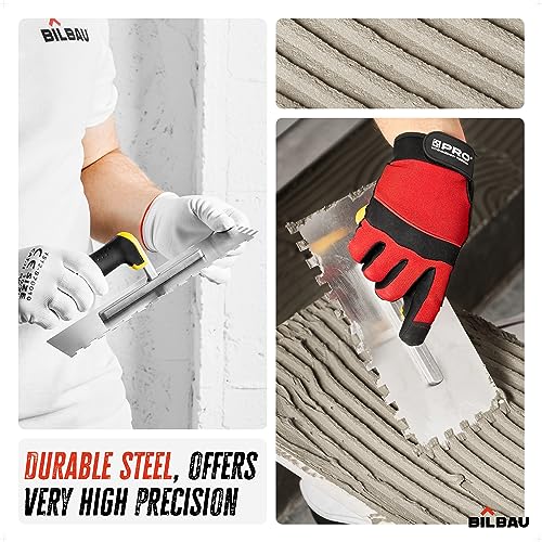 BILBAU Frattone per finitura 12cm x 28cm, denti 10mm x 10mm, cazzuola dentata in acciaio inox per l'applicazione di colla per piastrelle, stucco, gesso, intonaco, stucco, per ristrutturazioni