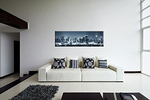 Vos bilder24. di - Decorazione da parete panoramica New York City Manhattan Midtown Skyline Nero Bianco nella notte su tela e case. Migliore qualità, fatto a mano in Germania., blau gelb weiß grün rot orange braun schwarz rosa, 30 x 90