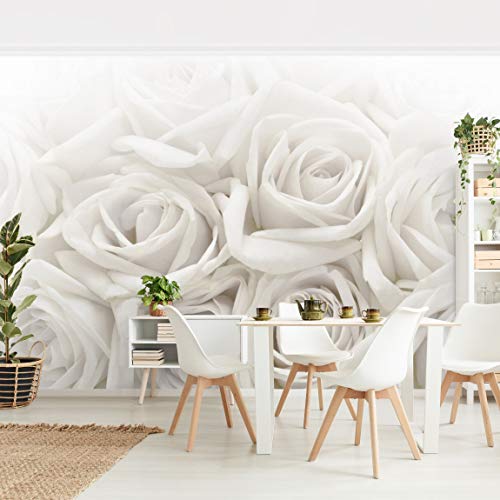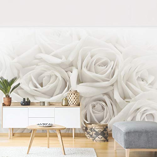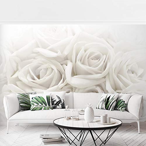 Bilderwelten Carta da parati - Rose bianche - Fotomurale carta da parati larga carta da parati tessuto non tessuto tappezzeria carta da parati moderna 3D parati di design, Dimensione AxL: 255cm x 384cm