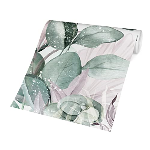 Bilderwelten Carta da parati - Botanica in pastello verde & rosa, Tessuto non tessuto Smart, Dimensione AxL: 290x432 cm