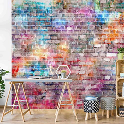 Bilderwelten Carta da parati - Muro di mattoni colorato shabby, Tessuto non tessuto Premium, Dimensione AxL: 336x336 cm