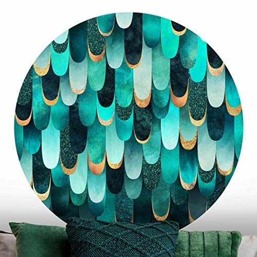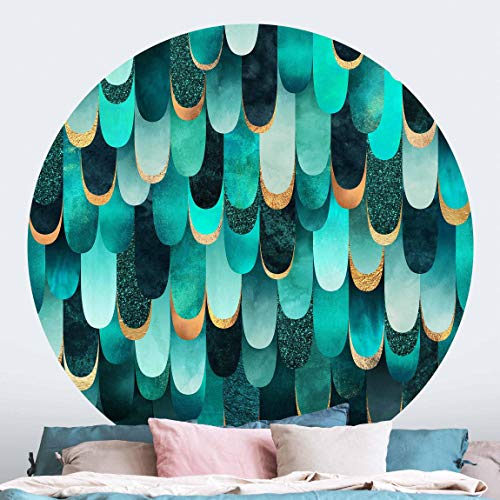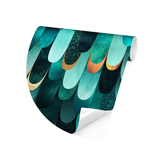Bilderwelten Carta da parati rotonda autoadesiva Elisabeth Fredriksson Piume d'oro Turchese 150x150cm