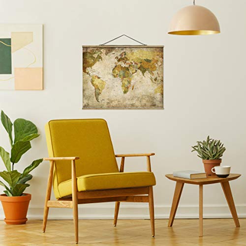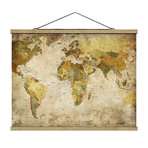 Bilderwelten Foto su Tessuto da Parete con Bastone - Mappamondo, 75cm x 100cm, Legno di Quercia