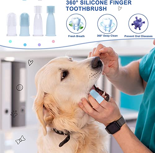 Bileumec spazzolino cani da denti per cani, kit spazzolino da dito (confezione da 4), denti facili da pulire, cure dentistiche per cuccioli, gatti e piccoli animali domestici