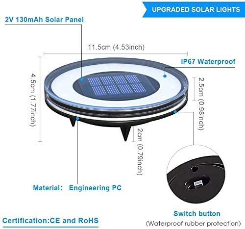 ☔Energia con il sensore di luce integrato, le nostre luci solari si illuminano e si illuminano di notte, quindi si spegne automaticamente e caricano le luci del disco rigido durante il giorno. Il nostro design trasparente del coperchio con le luci solari con un'elevata efficienza di ricarica risparmia tempo di ricarica e garanzia Buona illuminazione nei giorni piovosi o nuvolosi.