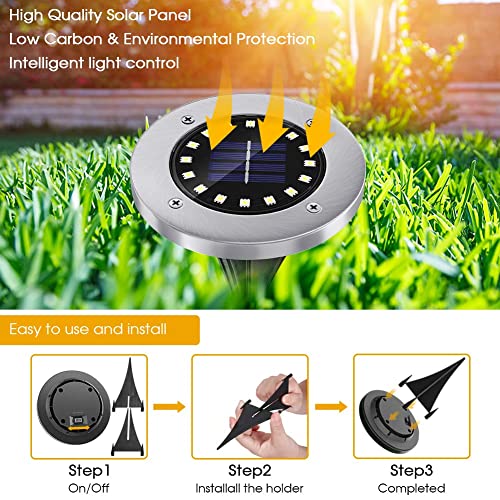 2022 Versione aggiornata con 16 luci a LED all'interno: ogni luce solare da giardino ha una batteria integrata da 600mAh, un design del pannello solare da 4,5 * 5,1 pollici con sensore di luce ad alta efficienza.Più luminoso di altre luci a disco solare.Perfetto per il tuo giardino.