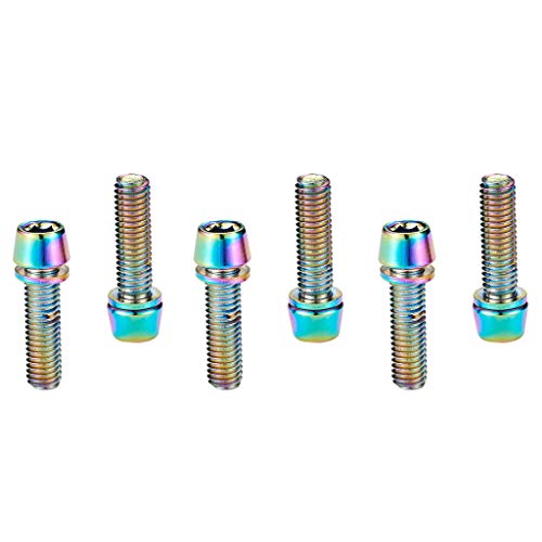 BIlinli 6pcs MTB Road Bike STEM Viti M5 / M6 Manubrio della Bicicletta Bulloni placcati in Titanio con rondella Accessori per Ciclismo