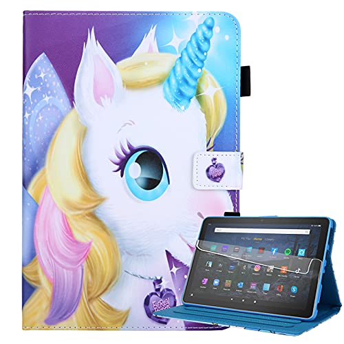 Billionn - Custodia per tablet Kindle Fire HD 10 e HD 10 Plus (11ª generazione, versione 2021) + pellicola protettiva per schermo, con sveglia e spegnimento automatico, motivo: cavallo Linglong