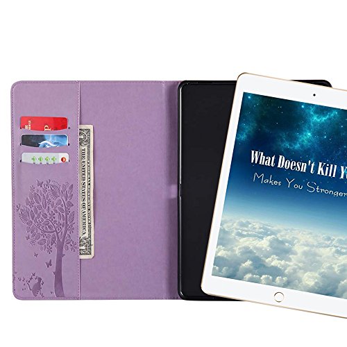 Billionn Nuovo iPad 9.7 2018 2017 Custodia, Albero Farfalla Custodia Pelle Portafoglio Protettiva Antiurto TPU Guscio Interno Chiusura Fibbia Cover per Apple iPad 9.7 2018 2017 (Viola Chiaro)