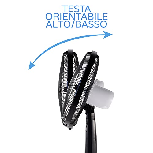 CARATTERISTICHE - Ventilatore rinfrescante Bimar, Elica Ø 40 cm con 5 Pale per un flusso d'aria più potente ed efficiente, garantendo un'elevata silenziosità. Oscillazione orizzontale automatica Destra/Sinistra. Inclinazione verticale regolabile Alto/Basso. Pannello di comandi elettronici dotato di luci LED che possono essere escluse rendendolo idoneo all'utilizzo notturno