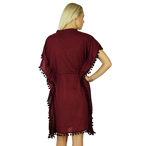 Bimba Caftano da donna in cotone con scollo a V e nappe pompon corto Caftano Beachwear Cover Up