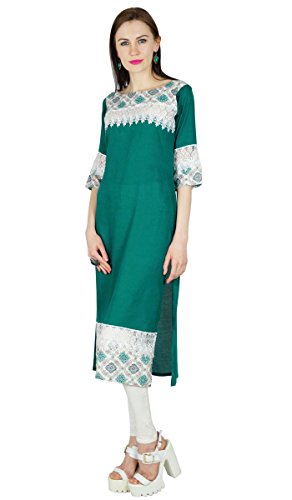 Bimba Donne Kurta Kurti 3/4 Manica Formale Casual Rayon Custom Camicetta Tunica con Pizzo