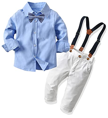 Bimbo Completini e Coordinati Gentiluomo Abbigliamento 4 Pezzi Camicia con Fiocco Bretelle Pantaloni Suit Formali Bambini Ragazzi Abbigliamento Set 6 Mesi 6 Anni (12-18 mesi, Blu006)