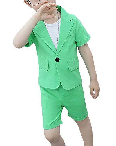 Bimbo Ragazzo Bambino da Cerimonia Giacca + Pantaloncini Abito Battesimo Maschio Completo Blazer Verde 110