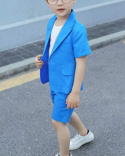 Bimbo Ragazzo Bambino da Cerimonia Giacca + Pantaloncini Abito Battesimo Maschio Completo Blazer Blu 140