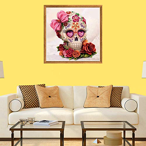 Bimkole 5d Diamond Painting Kit Completo Fai da Te Teschio Di Fiori, Pittura D'arte RosaPittura Diamante Punto Croce Strass Arte E Creazione Di Mosaico Decorazione Murale Artigianale (40x40 cm)