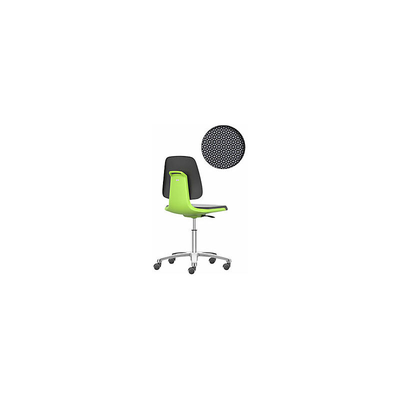Sedia girevole da lavoro LABSIT, basamento a cinque razze con rotelle, sedile Supertec, verde. Fornitura = in parte smontato. Versione telaio = con rotelle. Meccanismo sedile = meccanismo di contatto permanente. Materiale sedile = Supertec, plastica. Colore sedile = nero. Tipo di regolazione dell'altezza = pompa gas. Materiale telaio = alluminio, lucido. Campo di regolazione altezza = 450 - 650 mm. Altezza schienale = 430 mm. Larghezza sedile = 450 mm. Profondità sedile = 420 mm. Versione dei braccioli = senza braccioli. Diametro del piede = 640 mm. Portata = 120 kg. Colore del supporto del sedile = verde. Caratteristiche = robusto, traspirante, resistente al taglio. Tipo di prodotto = sedie girevoli da lavoro da laboratorio, sedie girevoli da lavoro. Hygienic Design - resistente ai diluenti e disinfettanti, antibatterico. Sostenibili e e riutilizzabili: il sedile imbottito e lo schienale sono sostituibili. Impiego versatile in diversi settori industriali, ambienti igienici