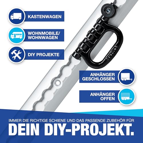 NTG 2 binari per airline da 2 m, forma semicircolare in alluminio con fori, fissaggio del carico per camion, rimorchi, camper, anodizzati, 1975 mm (fissaggio rapido e pronto per l'uso)
