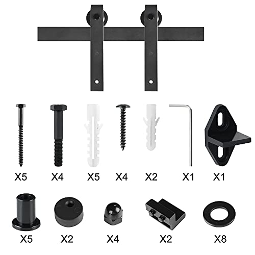 LZQ Kit Binario per Porta Scorrevole, Nero Kit Accessori Porte Scorrevoli Stratoper Bagno Cucina Studio (6,6FT/200cm, Una Porta)
