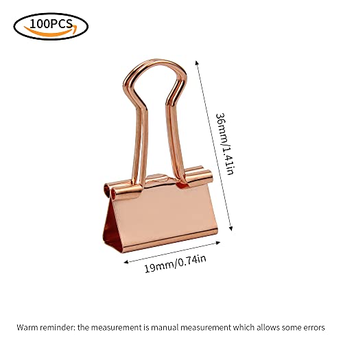 Binder Clips 100 pezzi FoldBack Binder Clips Carta per metallo Binder Clamps set morsetti per carta cancelleria, mini clip per fissare i file, chiusura sacchetto di plastica,Oro rosa