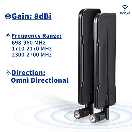 Bingfu Antenna 4G LTE Cellulare 8dBi SMA Maschio Compatibile con Router IoT Industriale Gateway Cellulare Hotspot Router CPE Wireless 4G LTE Fotocamera da Pista Telecamera di Sicurezza, 2 pacchi