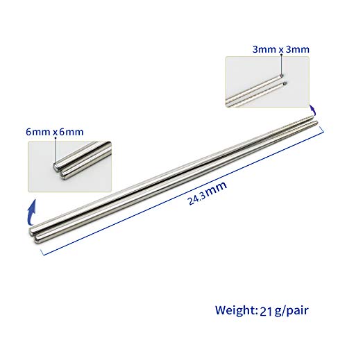 【Specifiche di prodotto】Bacchette di acciaio inossidabile la lunghezza è di circa 9.56 inch (24.3cm),0.74 ounce (21 g) per paio,10 coppie per scatola.