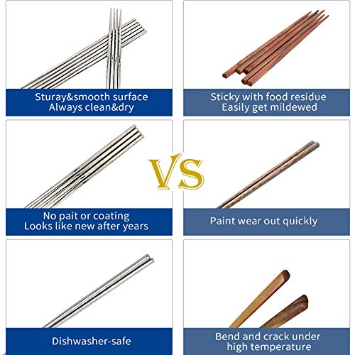 Bingolar Bacchette in Acciaio Inossidabile 304,Bacchette riutilizzabili,Bacchette da 10 Paia Bacchette Cinesi per Cena, Facile da Tenere, Lavabile in lavastoviglie, Pasta frittura Noodle.
