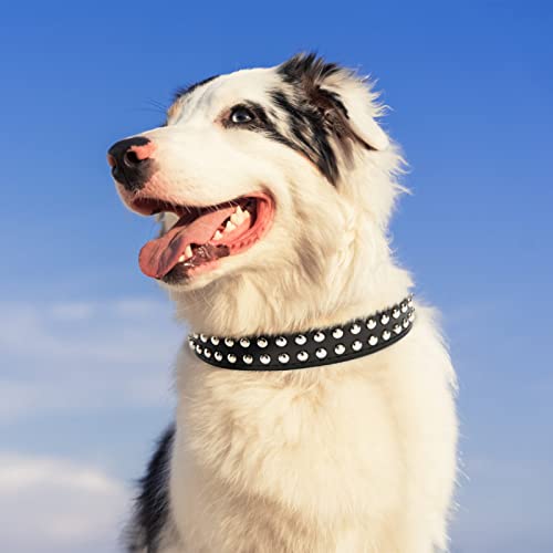 BINGPET BA2006 Collare regolabile per cani in vera pelle spaccata con borchie per cani di piccola e media taglia L, colore: nero M
