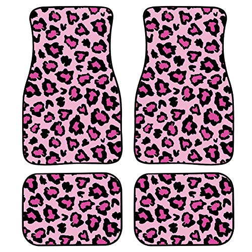 Binienty Accessori per interni auto, tappetini per auto leopardati rosa per anteriore e posteriore, tappeti per auto dal design classico ghepardo