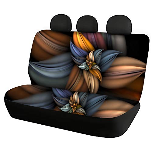 Binienty Set di 4 coprisedili posteriori anteriori per auto stampate con fiori astratti, in tessuto resistente, accessori per auto per donne