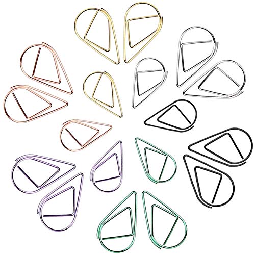 Binjor 300Pcs Graffette a forma di goccia in acciaio inossidabile Colorati placcatura Acciaio per molle segnalibri Carta Clip anti-mascheramento Fermagli Metallizzati
