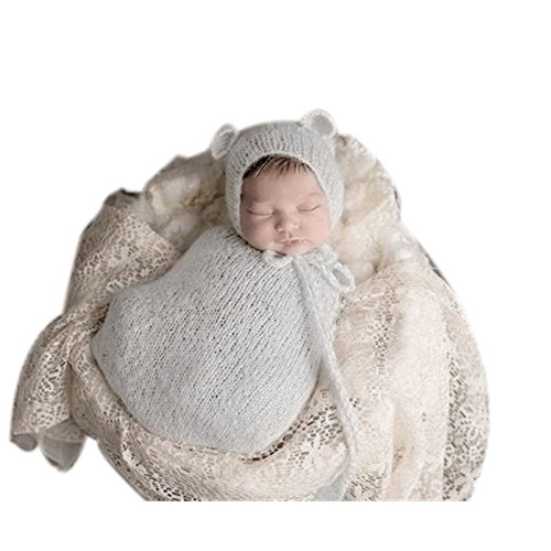 Binlunnu - Vestito fatto a uncinetto con cappellino per neonati, per fotografia, sacco a pelo con cappello