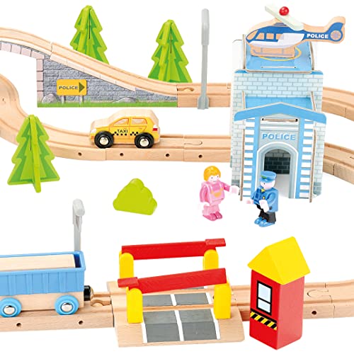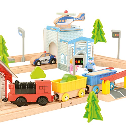 Bino- Pista Trenino in Legno 80 Pezzi, 82207