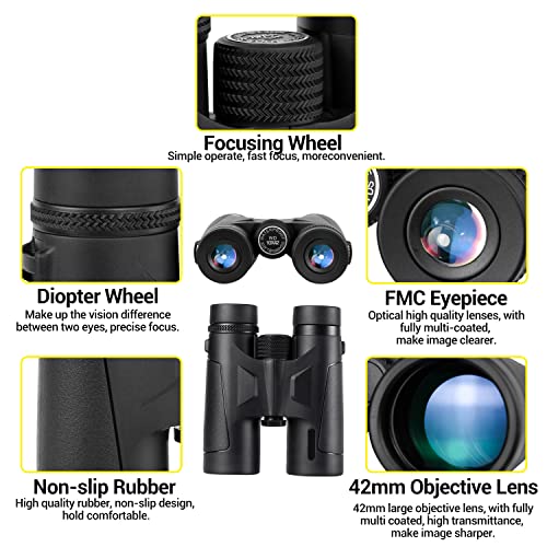 Binocolo 10X42 per adulti, con prisma BAK4, lente FMC, compatto professionale HD Binocolo per Bird Watching Viaggio Osservazione delle stelle Caccia Campeggio Concerti Sport