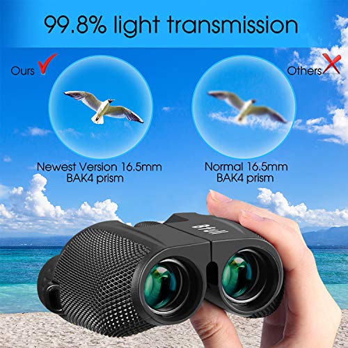 Ampio campo visivo: ingrandimento 10 x con obiettivo da 25 mm. Con la nuova versione BAK4 Prism, FMC Lens, il nostro binocolo compatto fornisce la migliore trasmissione della luce e crea una visione più luminosa e immagini nitide. Facile da concentrare.