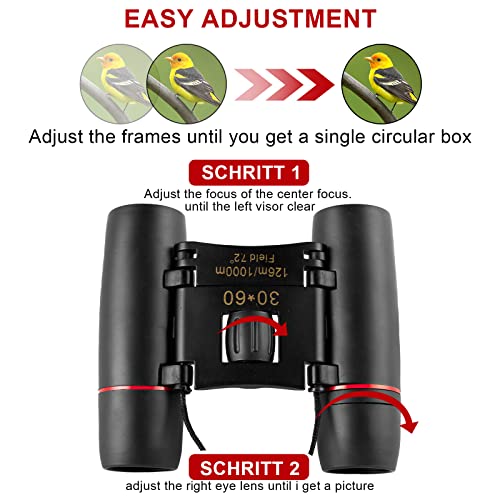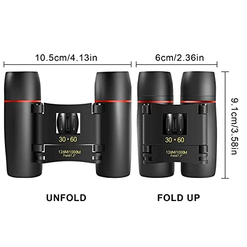 Binocolo 30 x 60, binocolo compatto per bambini adulti, mini binocolo piccolo telescopio pieghevole con luce debole, trasparente, pieghevole, impermeabile, per birdwatching, concerti, sport, opera