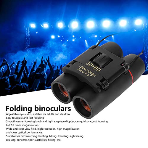 Binocolo pieghevole, piccolo e portatile, larghezza degli occhi regolabile, adatto per adulti e bambini.L'ottica completamente rivestita aumenta la luminosità, la trasmissione della luce super, adatta a varie condizioni meteorologiche e visione notturna a basso livello di luce.