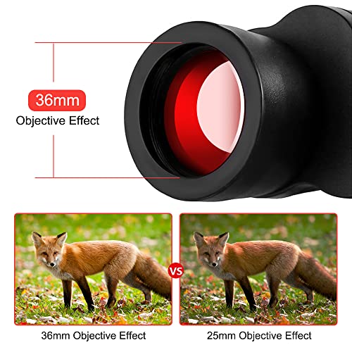 Chiaro e luminoso: le lenti multistrato garantiscono un sistema ottico di alta qualità. Fai vedere le cose più luminose, più nitide e ingrandire i dettagli che potrebbero essere facilmente trascurati. Debole visione notturna leggera. Può essere utilizzato di notte, ma non nel buio completo.