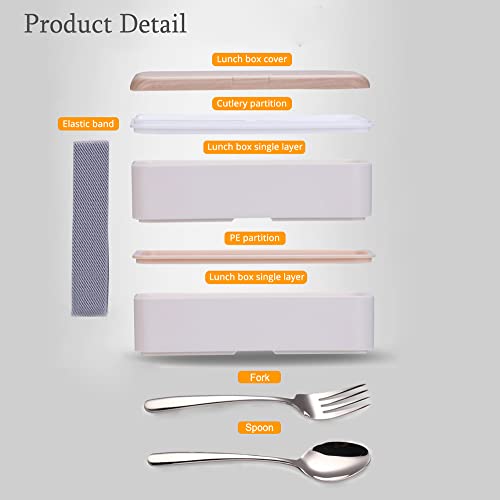 Binoster Lunchbox portapranzo Scatole bento box contenitore originale divisore bundle stile giapponese con cucchiaio e forchetta in acciaio inox(bianca)